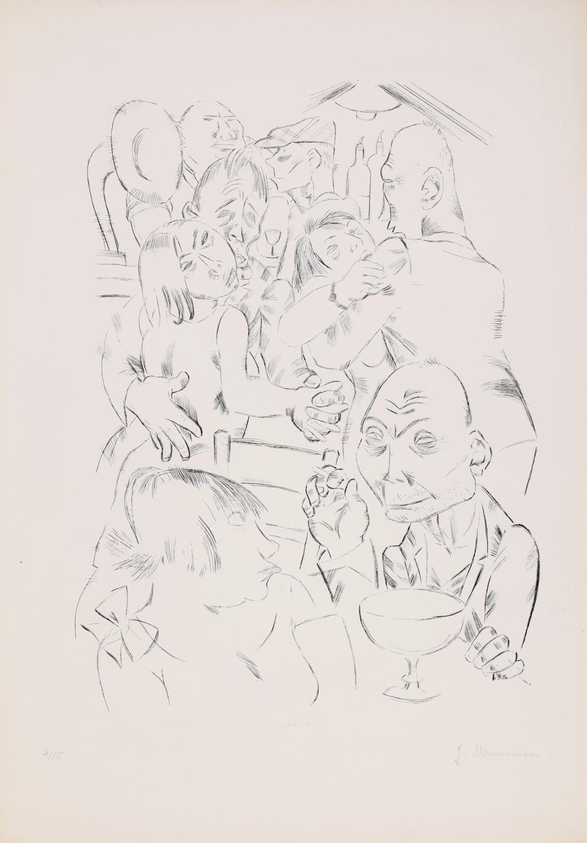 ProvenanceJeanne-Mammen-Gesellschaft, Berlin. (Kunsthandel Jörg Maaß); purchased 2022 by Allen Memorial Art Museum, Oberlin, OHMammen is one of the vital–although often overlooked–artists of Weimar Germany. She was born in Berlin and raised in Paris. She studied throughout Europe, returning to Paris in 1912 as a respected artist. She was forced to return to Germany when her family lost their business and fortune as a result of the reparations agreement with the French after World War I. In interwar Germany, she earned a living primarily from printmaking and book illustration. An out lesbian, Mammen especially featured women in her portraits and genres scenes, from socialites and urbanites, to prostitutes, lovers, and cabaret performers backstage.