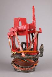 Not on viewKhoury’s meticulously-crafted works often appear improvisatory, incorporating industrial materials and discarded objects, such as pet cages or these leather belts. She describes how constraints can offer safety but also limit freedom. These tensions relate both to Khoury’s pets and to geopolitical conflicts with which she is engaged as the child of Iranian and Jordanian-Palestinian refugees.