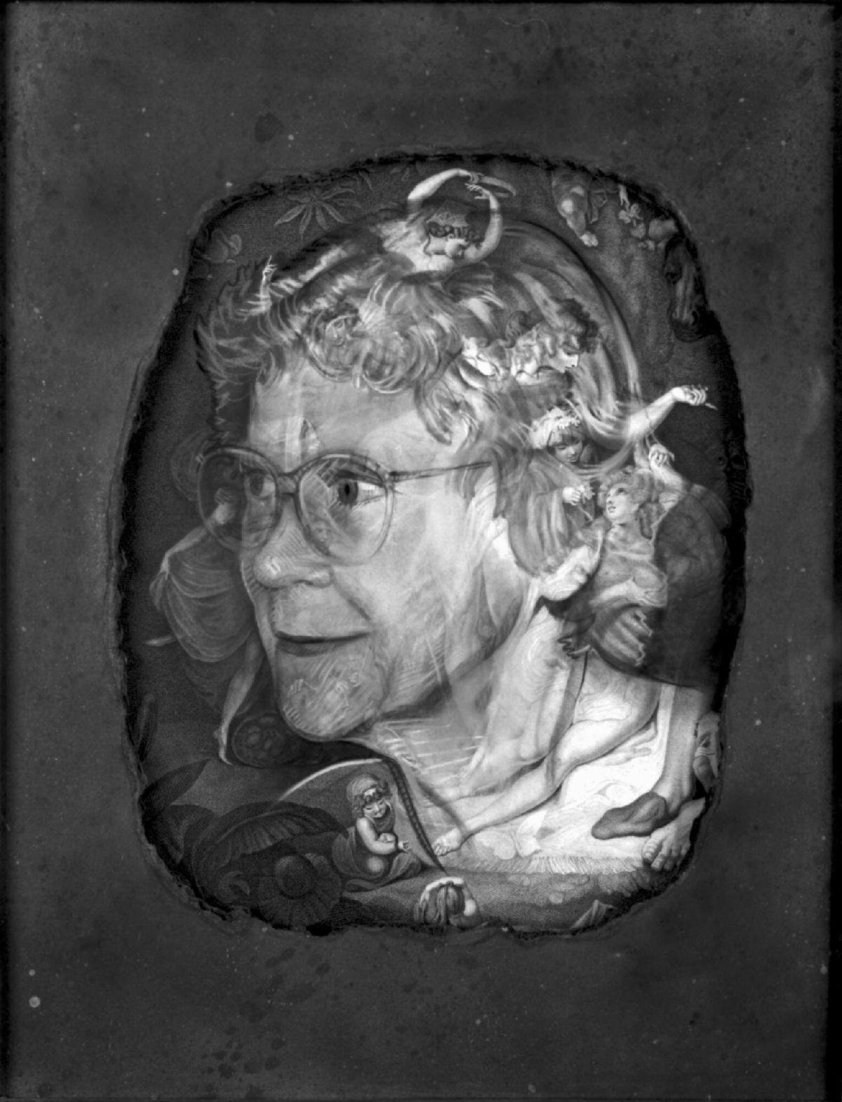In three-quarters profile, David Saunders drew Johnson's face over an eighteenth-century engraving of a "Midsummer Night's Dream" by Fuseli.