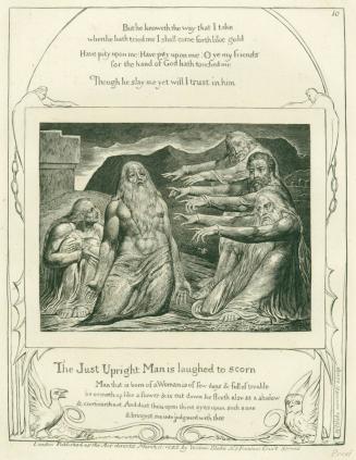 Not on viewPainter, poet, and printmaker William Blake was an eccentric visionary and ardent nonconformist known for his mystical themes and innovative forms. Largely underappreciated by contemporary critics, Blake’s works are now lauded for their elusive symbolism and complex personal mythology. As one of his final and most commercially-successful projects, Blake produced a series of 22 engravings to illustrate the biblical Book of Job, which tells the story of a righteous man whose faith is tested by the trials of Satan. Blake identified with Job’s suffering, due to his own struggles with poverty and lack of critical recognition. The Job narrative also mirrors Blake's artistic vision: Blake was deeply opposed to academic art, and in his interpretation of the tale Job is transformed from despair to redemption through a spiritual belief in the power of individual imagination.