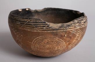 Black Polished Ware Bowl Decorated with Zig-Zags, Circles, and Bands