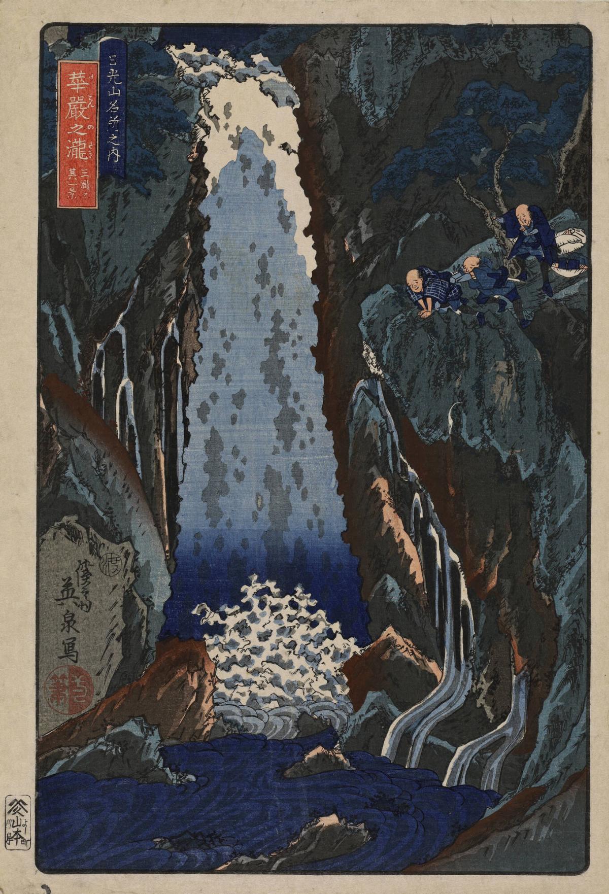 View of the Three Cascades of Kegon Waterfall, from the series Famous Places in the Mountains of Nikko