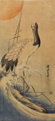 Crane, Waves and Rising Sun