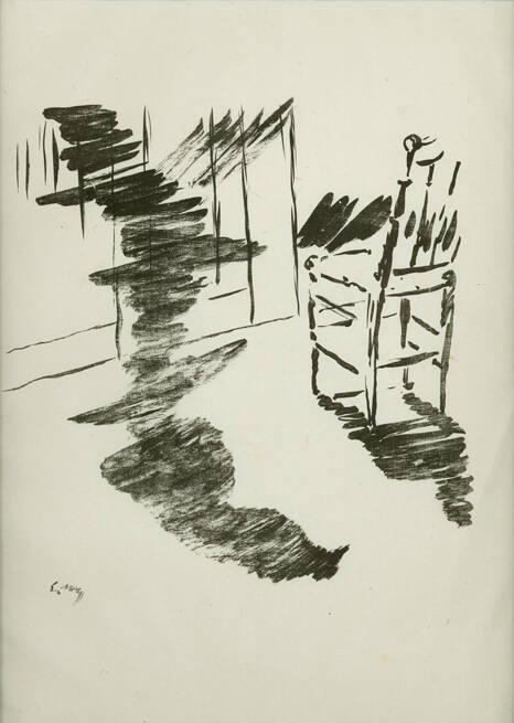 In 1875, poet Stéphane Mallarmé published Le Corbeau, his French translation of Edgar Allan Poe’s “The Raven.” Mallarmé asked his artist-friend Edouard Manet to provide illustrations for the limited edition publication, which sold for a mere 25 francs. Manet complied with a series of five lithographs which presented four crucial moments in the narrative, as well as an ex libris (bookplate). The dark, sketchy atmosphere of Manet’s compositions mirrors the foreboding tenor of Poe’s poem, which tells of a heartbroken lover tormented by the midnight intrusion of a talking raven in his chamber. One of Poe’s best-known works, the tale of the raven who quothed “Nevermore” has been a popular source for other artist-illustrators, including Gustave Doré, John Tenniel, and James Carling.