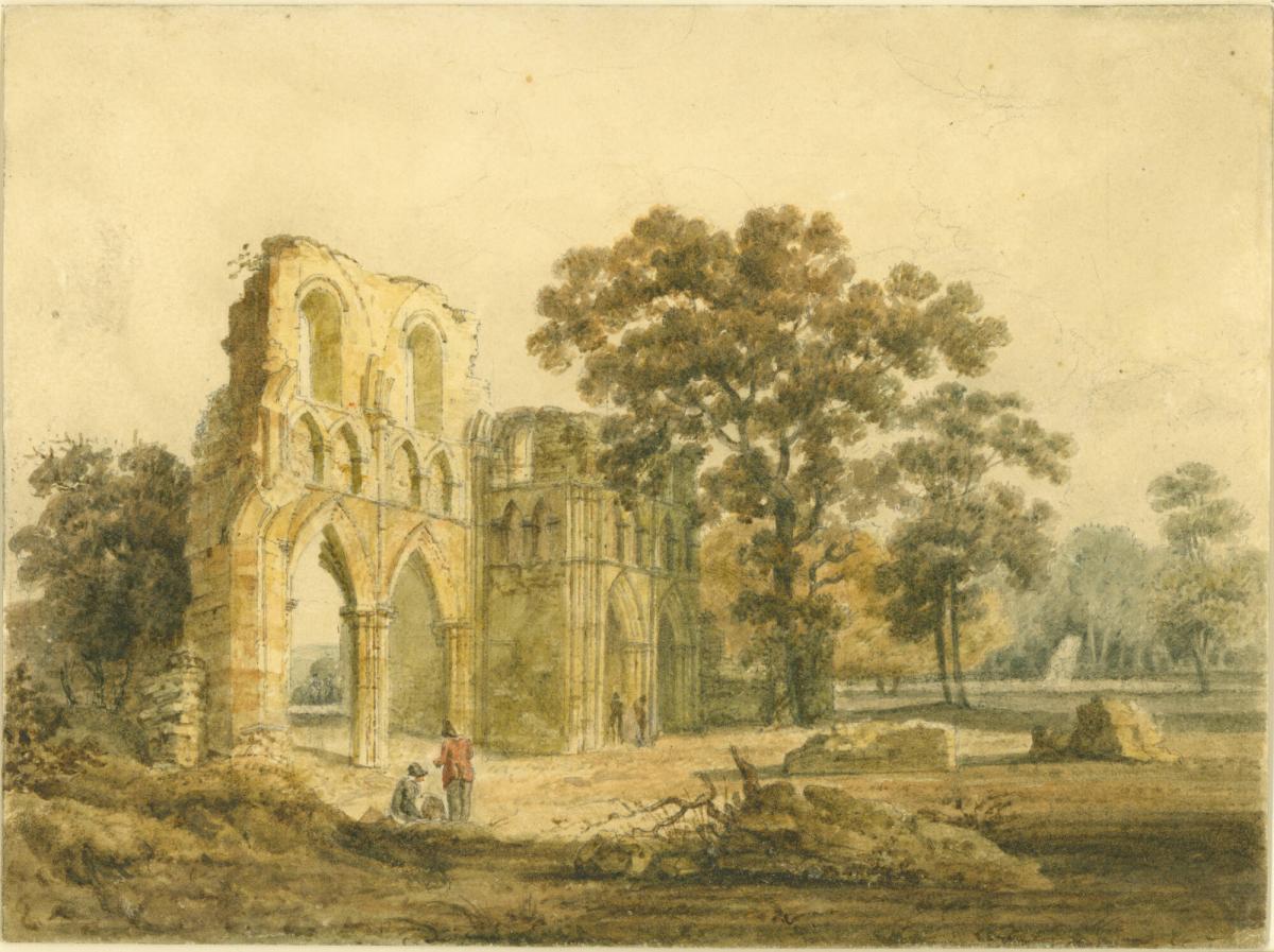 Not on viewEighteenth-century theories of the "picturesque" elicited a new appreciation for irregularity, roughness, and variety in nature, as well as the spontaneity of sketching or painting outdoors. Such direct aesthetic encounters, it was believed, aroused the senses and inspired poetic experiences. Watercolor landscapes, such as those popularized by Thomas Girtin and J. M. W. Turner, were practiced by many contemporary draftsmen and amateurs to readily record their subjective response to nature.