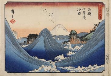 Fuji between High Waves from Shichiri Beach in Sagami Province, from the series Thirty-six Views of Mt. Fuji