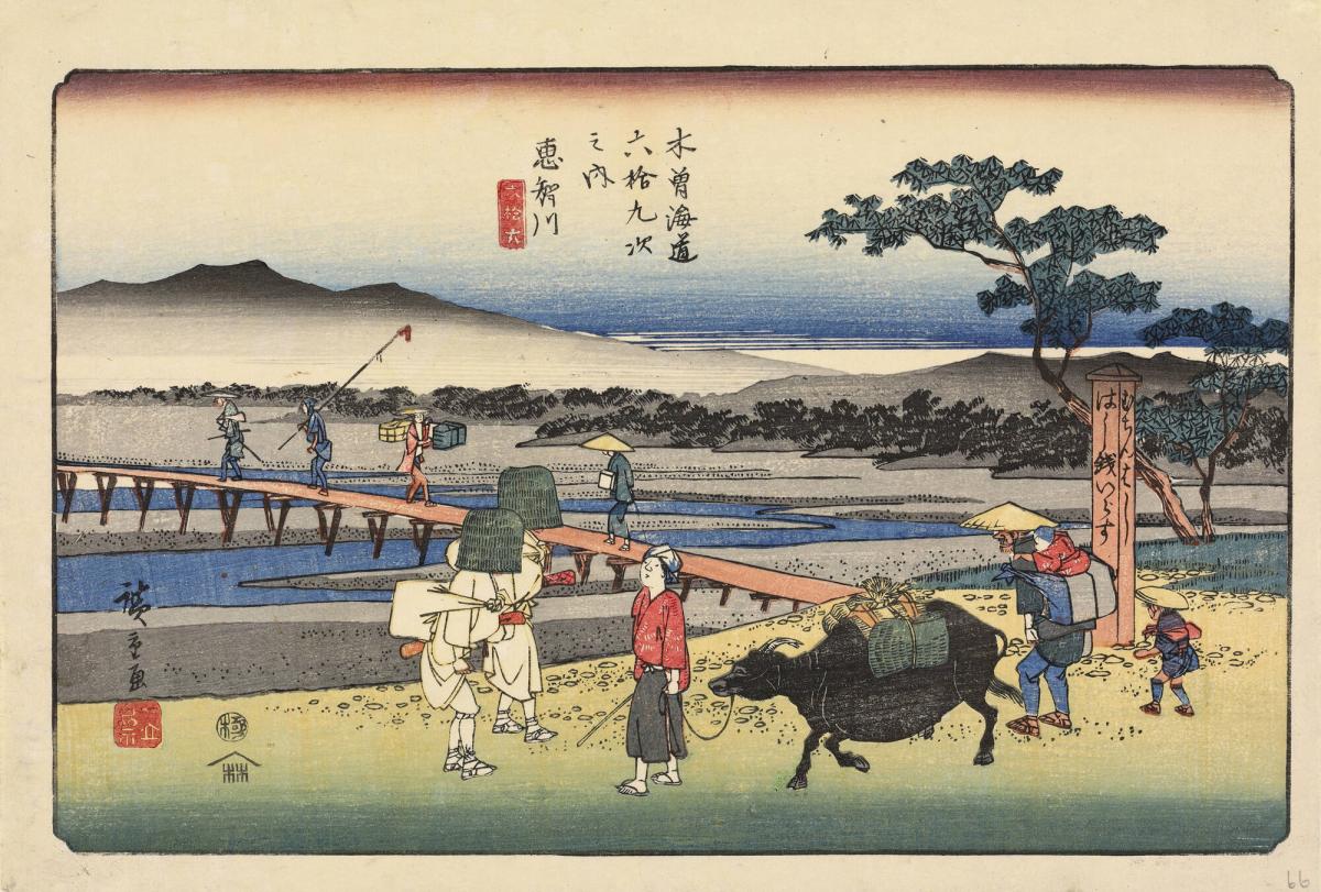 Bridge at Echikawa, no. 66 from the series Sixty-nine Stations on the Kisokaidō