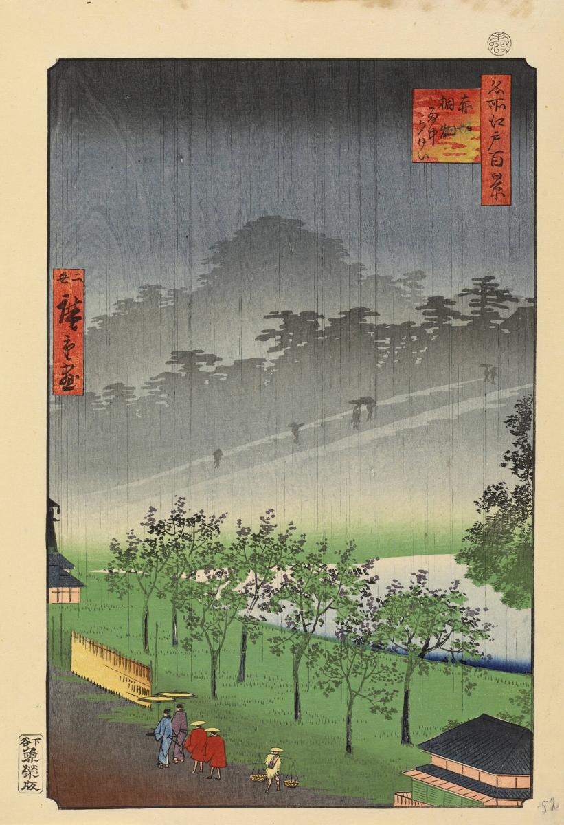 Night Rain at Akasaka Kiribatake (Akasaka Kiribatake uchū yūkei), from the series One Hundred Famous Views of Edo (Meisho Edo hyakkei)