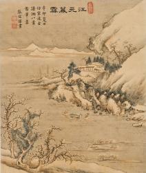 Not on viewThis winter landscape, according to Zhang Kai’s inscription, is an imitation of the brush ideas (biyi) of Eight Views of the Xiao and Xiang Rivers painted by Song Di (act. 1015-1080). Northern Song scholar-painter Song Di is credited as the creator of the eight scenes, which were popular among the literati elite. This theme later became popular not only in China, but also in Korea and Japan. In 1745, emperor Qianlong commissioned the painter-official Dong Bangda (1699-1769) to make a copy of the handscroll Eight Views of Xiao and Xiang by Ma Yuan (act. 1189-1225), then in the imperial collection. As a court painter in the Qianlong period, Zhang Kai’s album leaf could have also been painted for the emperor.