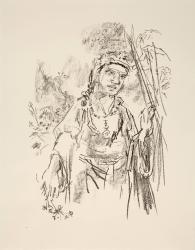 Not on viewIn 1963, Austrian painter Oskar Kokoschka created a series of 16 lithographs to illustrate William Shakespeare’s King Lear. One of the Bard’s most highly-regarded tragedies, the play follows the elderly King Lear’s descent into madness after foolishly dividing his estate among two of his three daughters based on their false flattery, resulting in a tragic outcome for all. Kokoschka’s series depicts critical points in the narrative which often correspond to dialogue by Lear and his daughters Goneril, Regan, and Cordelia, in addition to that of the other characters vying for the throne. Providing minimal information about the setting of each scene, Kokoschka’s sketchy compositions instead focus on the characters, each depicted with the artist’s characteristic energetic expressionism.