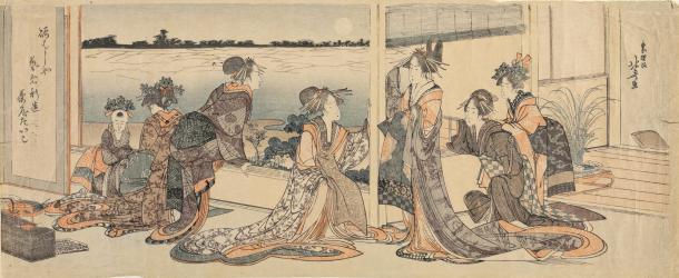 Courtesans of the Ogi House Viewing the Moon