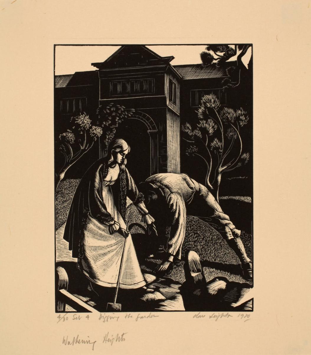 Not on viewClare Leighton, known for her illustrations of nineteenth-century British novels, also wrote prolifically on the virtues of rural life in an increasingly urban and industrial world. These wood engravings for a 1931 edition of Wuthering Heights combine Leighton's cherished English countryside with the brooding moors of Emily Brontë's imagination.