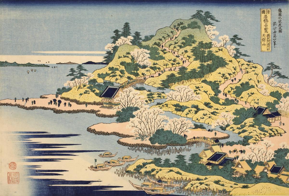 Mt. Tempo at the Mouth of the Aji River in Settsu Province, from the series Famous Bridges of the Provinces