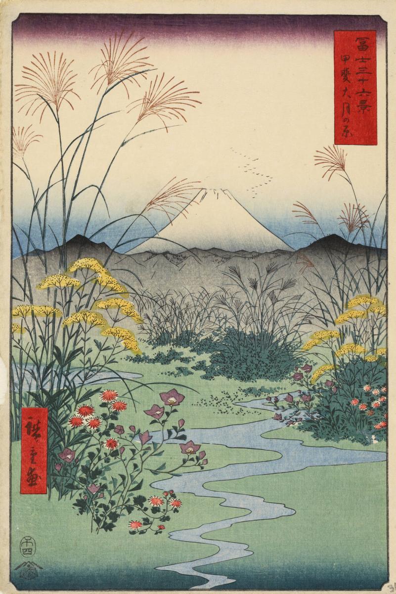 Autumn Flowers on the Otsuki Plain in Kai Province, no. 31 from the series Thirty-six Views of Mt. Fuji
