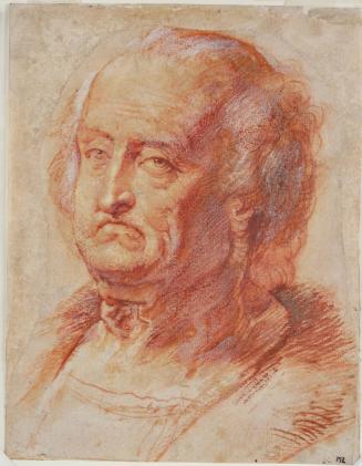 Not on viewThis is one of many drawings by Rubens from his early years in Italy that directly copy, or are indirectly inspired by, the work of earlier artists. In this instance, Leonardo da Vinci's physiognomic studies of old men likely served as the model for Rubens's objective description of an old man's sagging flesh and grizzled hair.