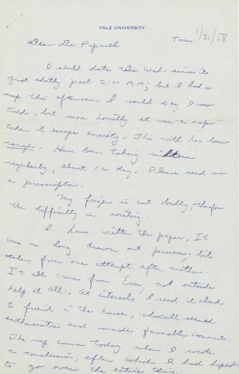 Letter from Eva Hesse to Dr. Helene Papanek