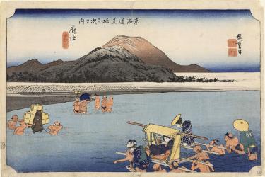 Fording the Abe River at Fuchu, no. 20 from the series Fifty-three Stations of the Tōkaidō