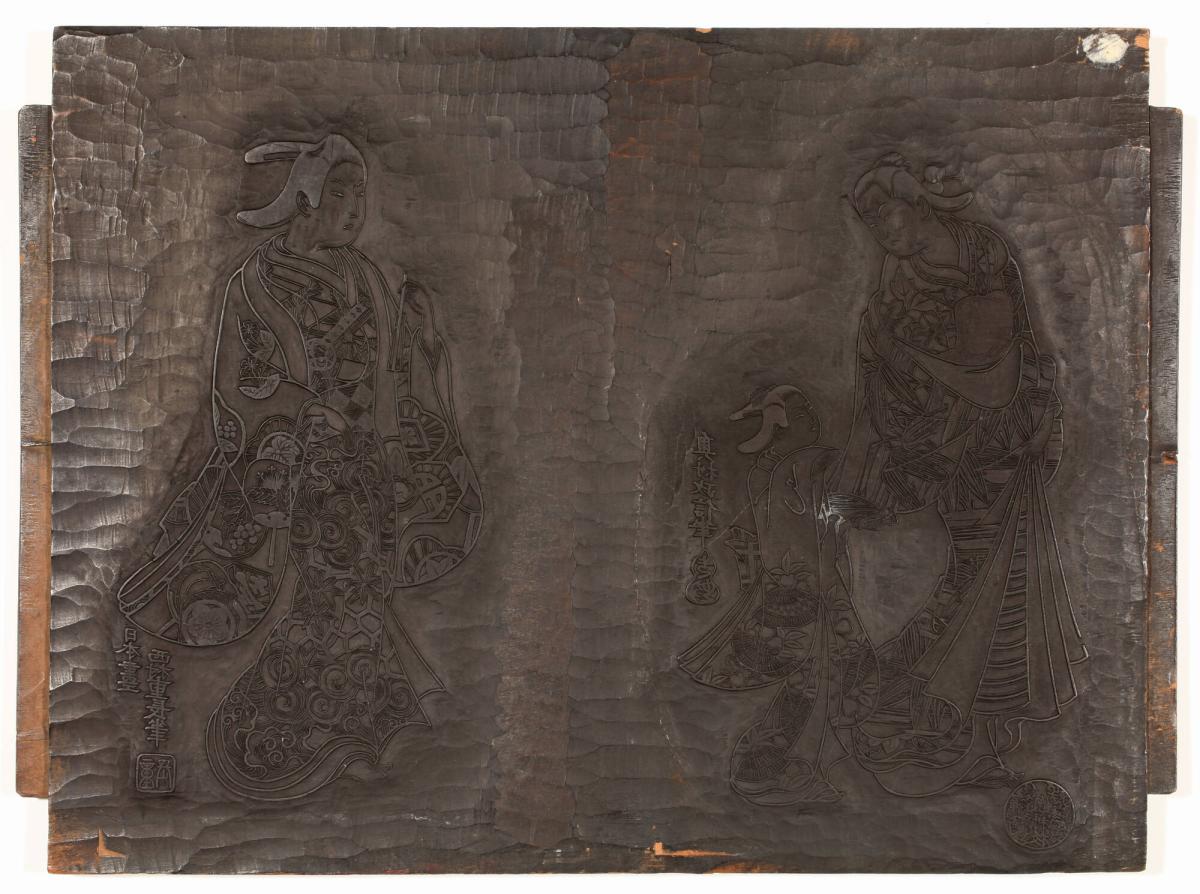 Woodblock Showing a Key Block for each of Two Men after Nishimura Shigenaga and Okumura Masanobu, from the series Young Man Holding a Fan by Shigenaga. Courtesan with Young Attendant by Masanobu
