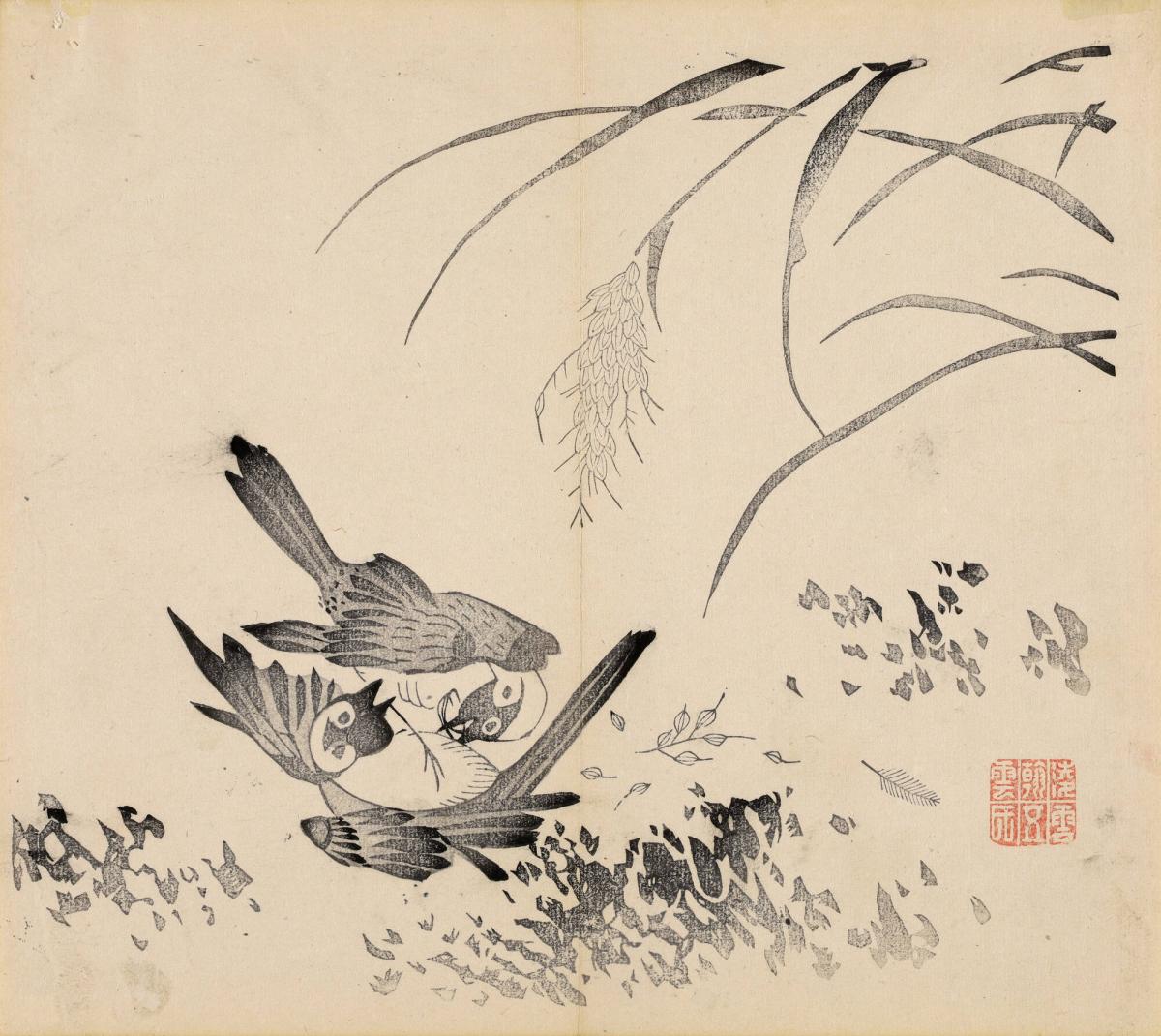 Two Birds, from the Ten Bamboo Studio Calligraphy and Painting Manual
