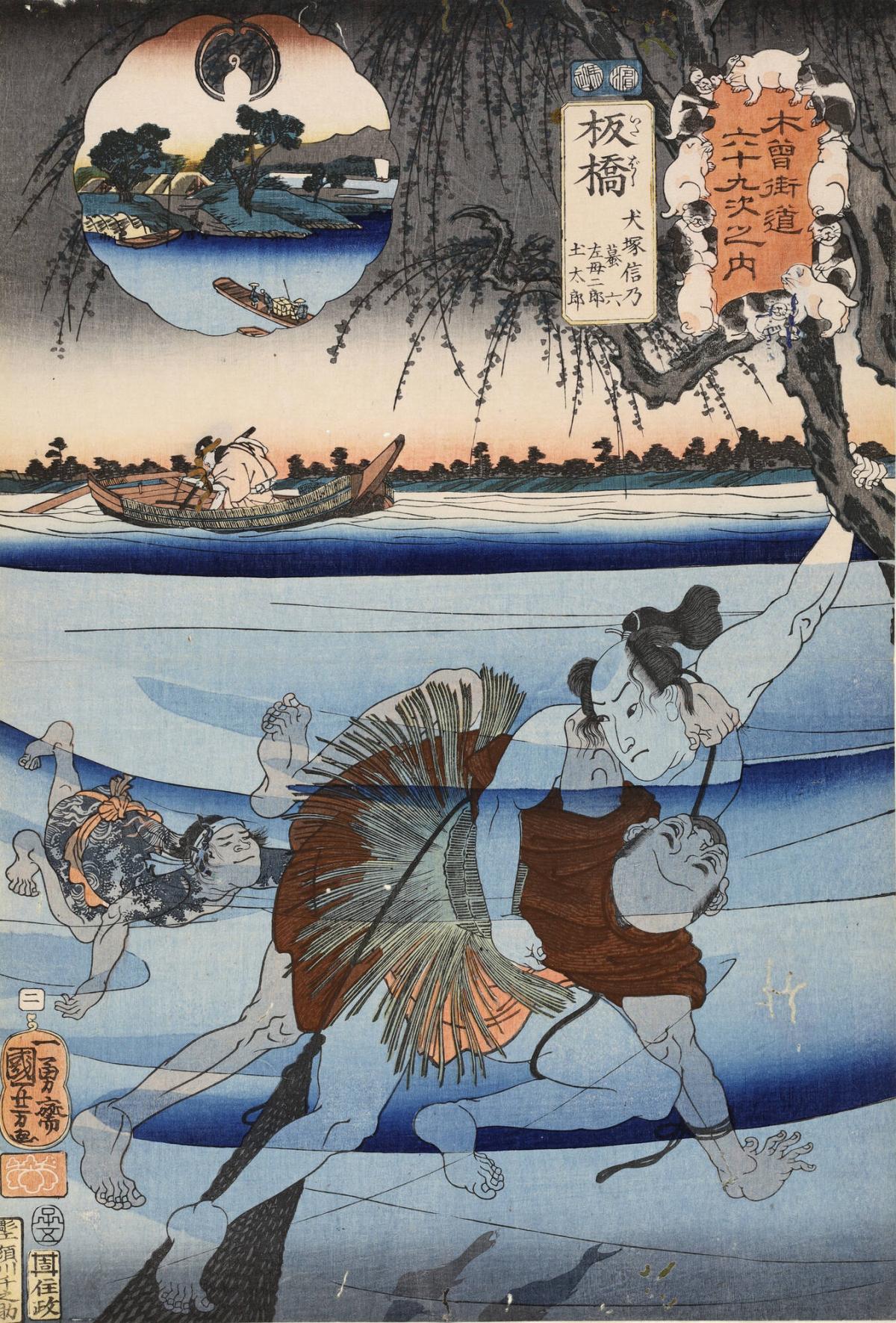 Itabashi: Inuzuka Shino Rescuing the Fishermen, no. 2 from the series The Sixty-nine Stations of the Kisokaidō