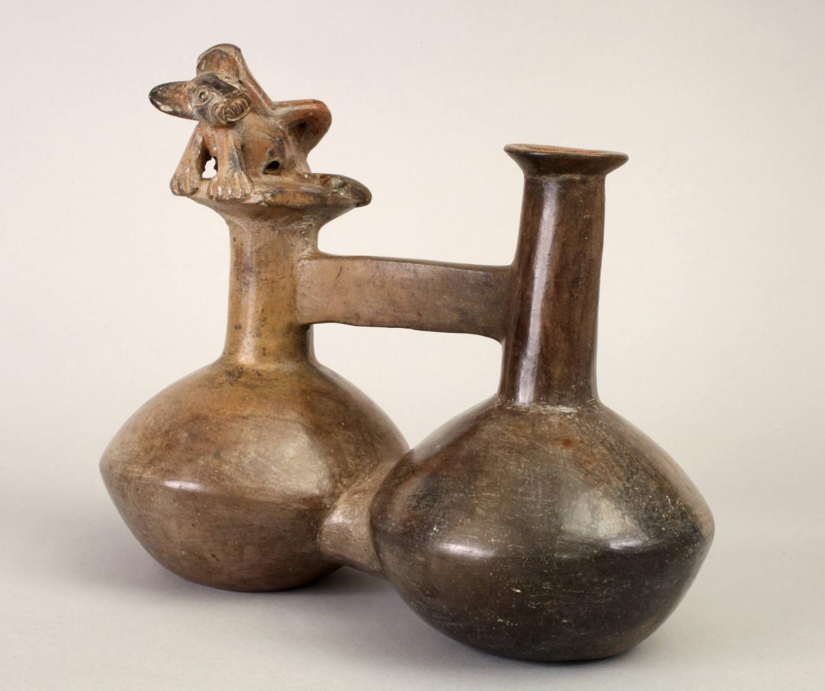 Molded Double-Chambered Vessel with Feline-shaped Finial