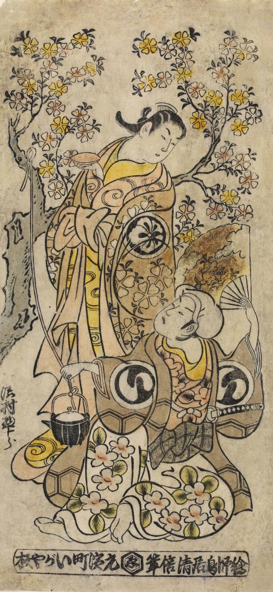Sawamura Sojuro I and Another Actor with a Wine Kettle Beneath a Cherry Tree in an Unidentified Dance Interlude