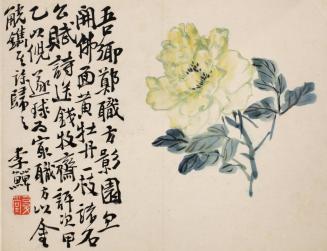 Once in Officer Zhèng’s [Zhèng Yuánxūn 鄭元勳] Garden of Shadows in my hometown, all of a sudden a Buddha-like yellow peony bloomed. Some renowned literati came to compose poems for it, after which the poems were sent to Qián Mùzhāi [Qián Qiānyì 钱谦益] to be evaluated. The one by Ní Suìqiú [Lí Suìqiú黎遂球] came out a winner. Hence, he was rewarded by Officer Zhèng with golden cups engraved with his poem.