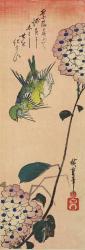 Small Green Birds and Hydrangeas
