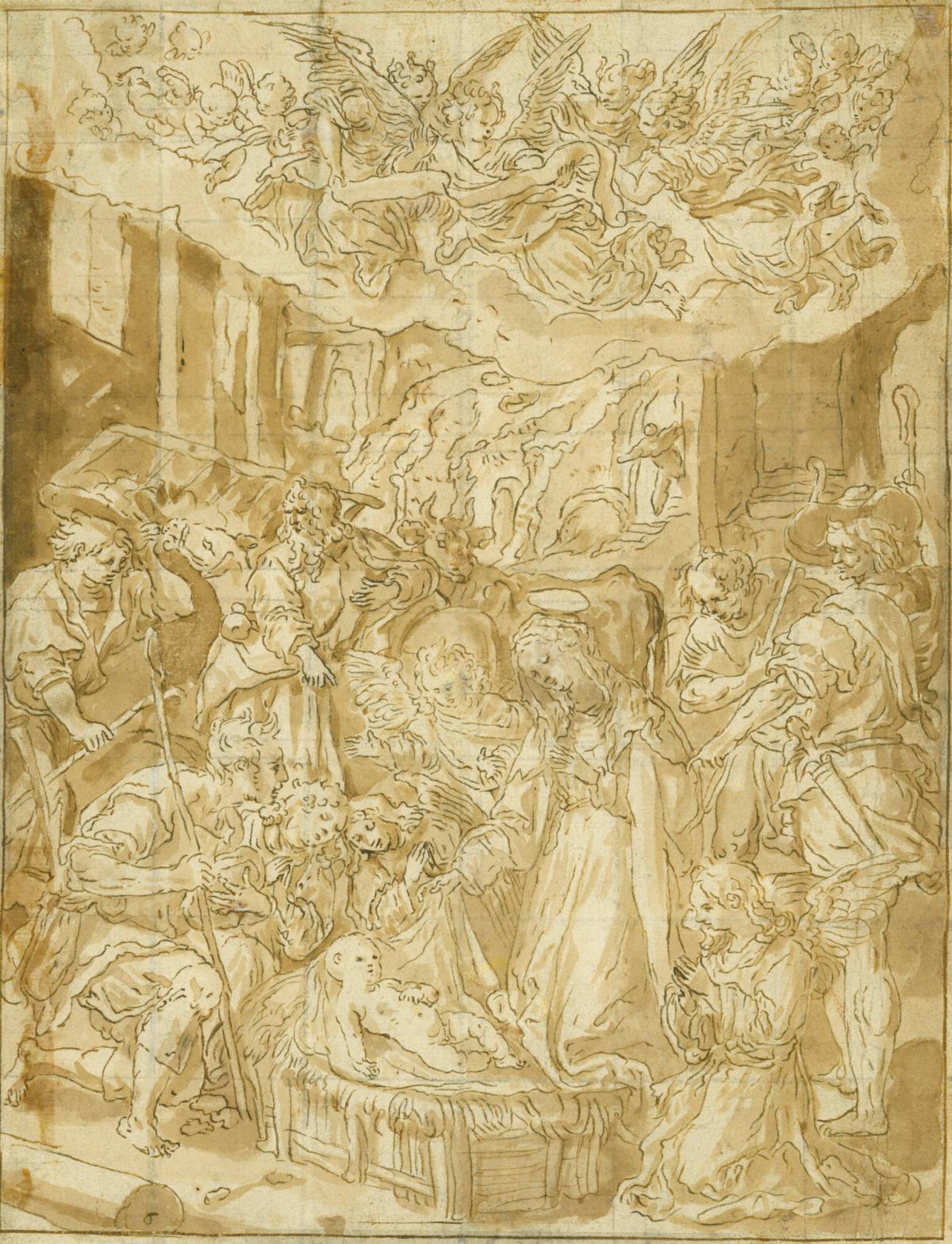 MediumPen and brown ink and brown wash, with black chalk transfer lines on paper