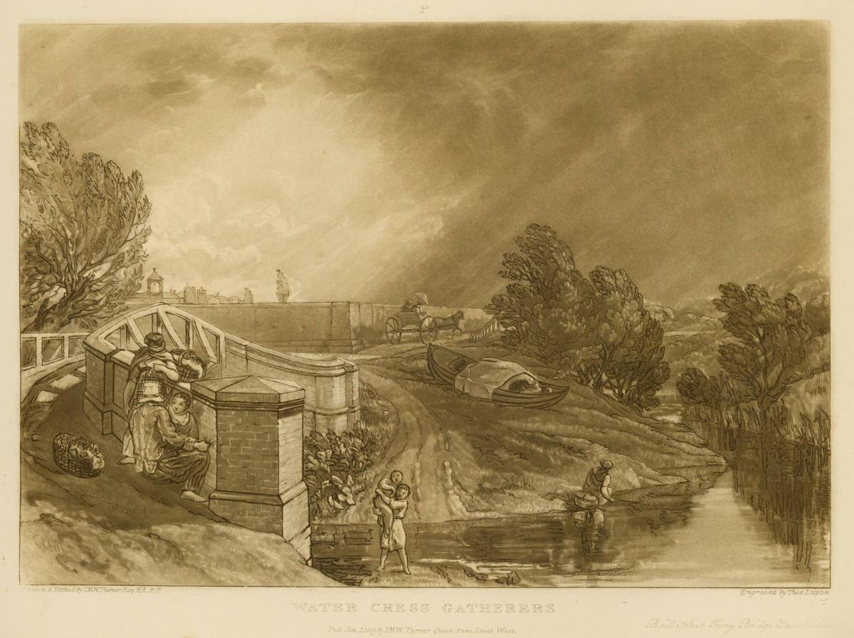 Water Cress Gatherers, Rails Head Ferry Bridge, Twickenham, part XIII, plate 62, from Liber Studiorum