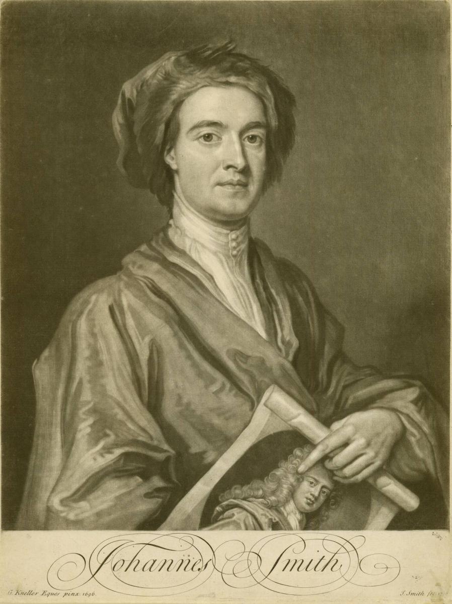 Self-Portrait Holding his Mezzotint after Sir Godfrey Kneller's Self Portrait