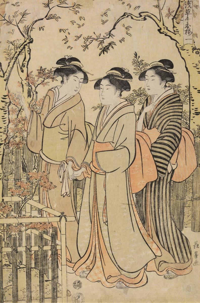Three Women Viewing Cherry Blossoms, from the series The 1000 Cherry Trees at Asakusa