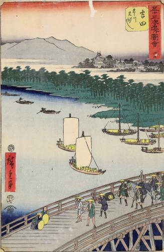 The Bridge on the Toyo River at Yoshida, no. 35 from the series Pictures of Famous Places of the Fifty-three Stations, the Vertical Tōkaidō