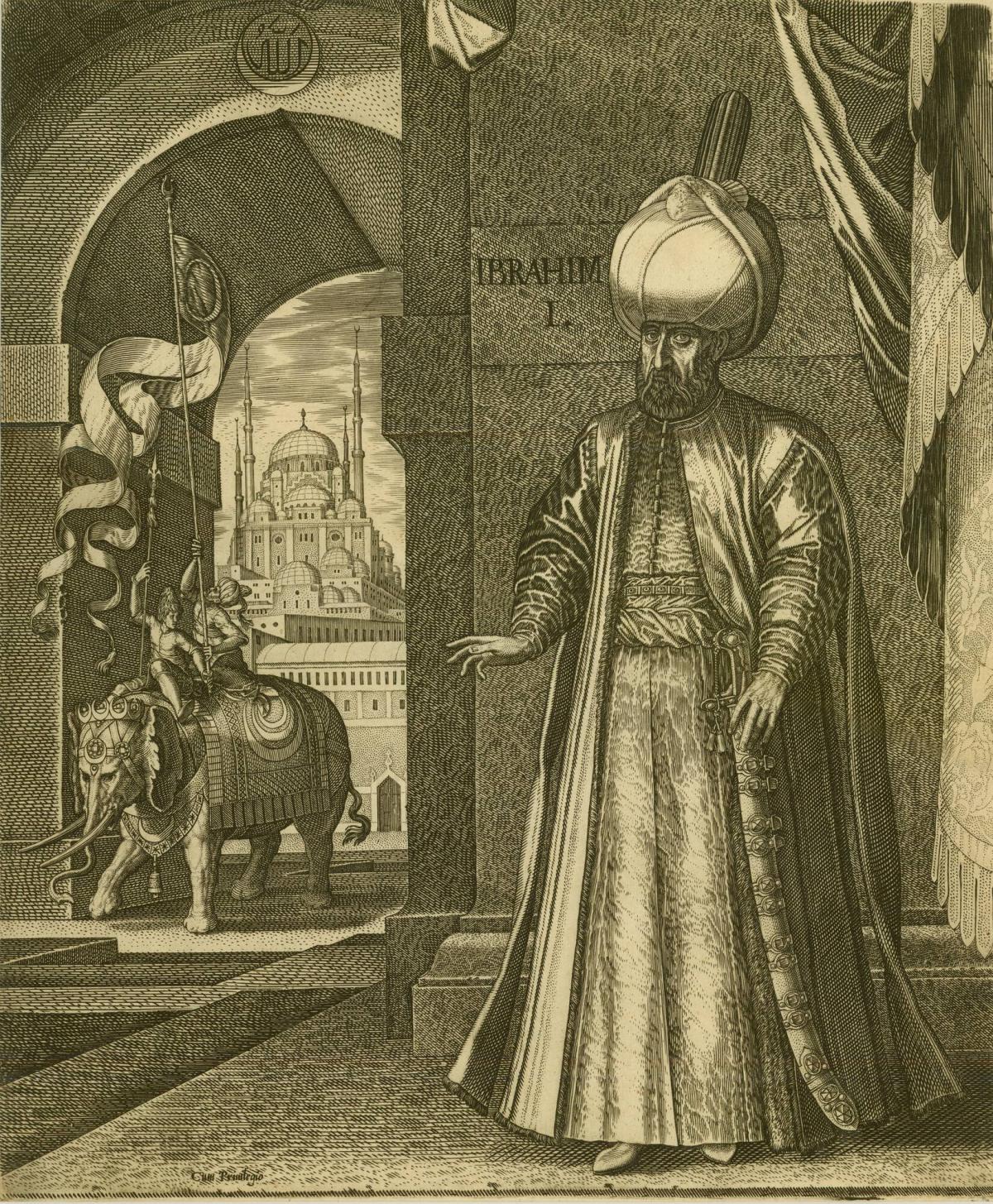 Sultan Süleyman and the Süleymaniye Mosque, Constantinople, 1574 (or earlier) , altered in 1688 to represent Ibrahim I