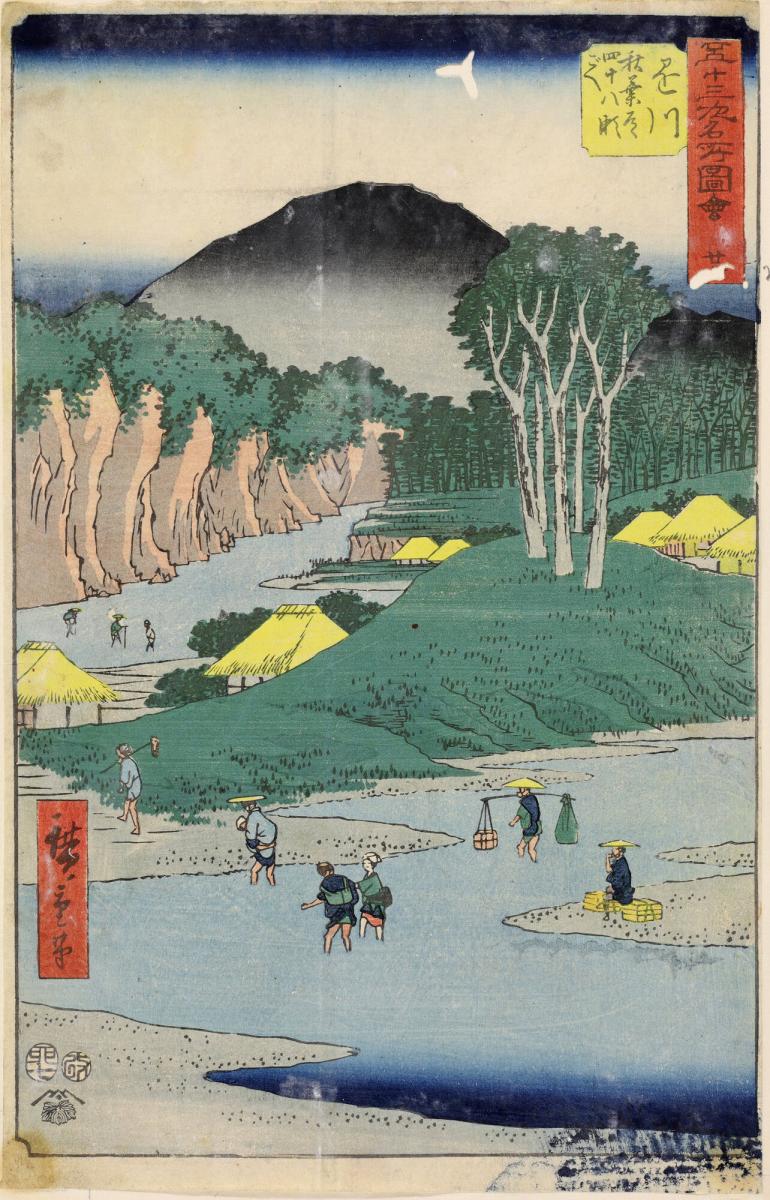 Crossing the Forty-eight Rapids on the Road to Akiba near Kakekawa, no. 27 from the series Pictures of Famous Places of the Fifty-three Stations, the Vertical Tōkaidō