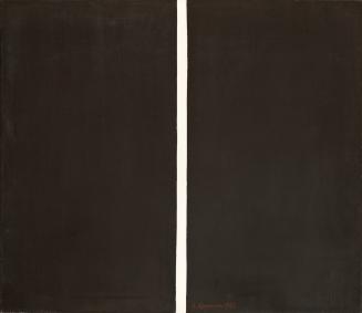 Not on viewThis work-radically (and deceptively) simple in its stark black field bisected by a white stripe-is one of Barnett Newman's earliest "zip" paintings, a term coined by the artist. According to him, such works symbolized the very acts of creation and revelation. Newman remembered his first such painting, entitled Onement and later modified to Onement I, as a profound moment of change in his career: