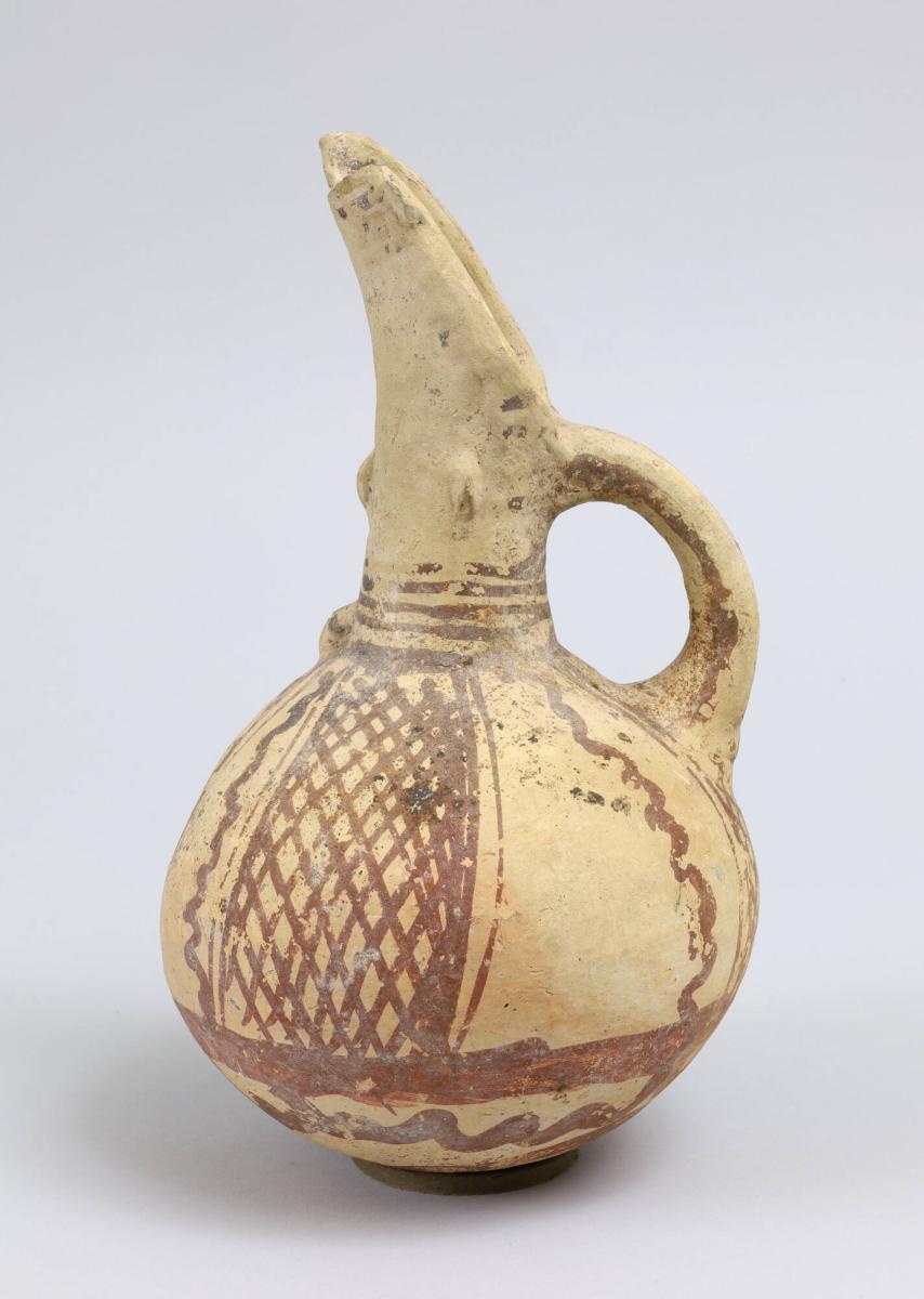 White Painted Ware Jug in String-Hole Style with Latticed Bands