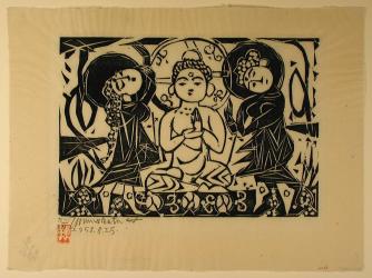 Some of Munakata’s best-known prints have Buddhist subjects, reflecting the artist’s devotion to Zen Buddhist practice and thought.