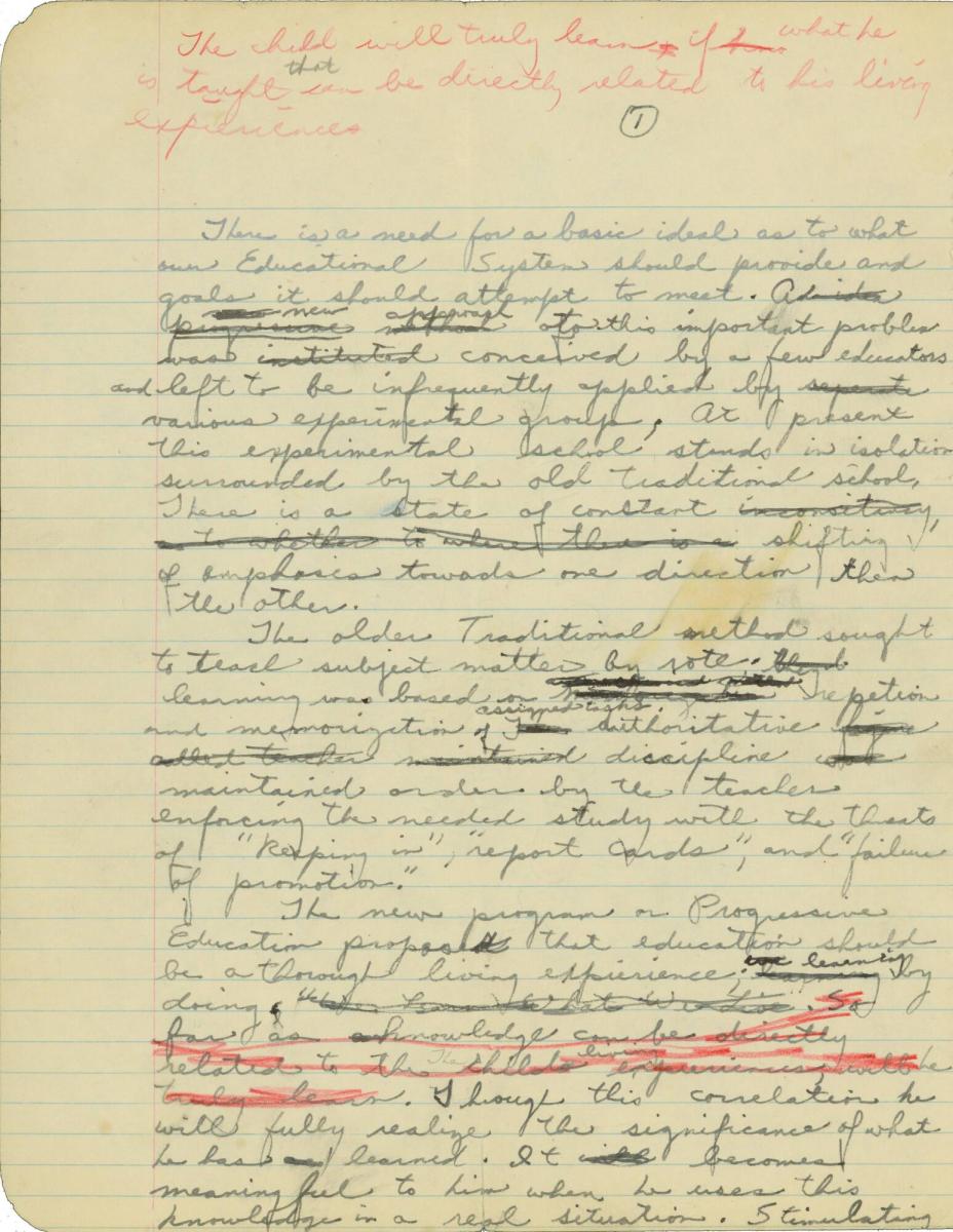 MediumHand-written with dark pencil with red comments on lined notebook paper