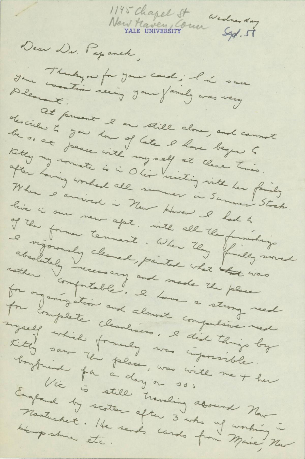 MediumTwo-page letter in black ink on white writing pad with Yale letterhead