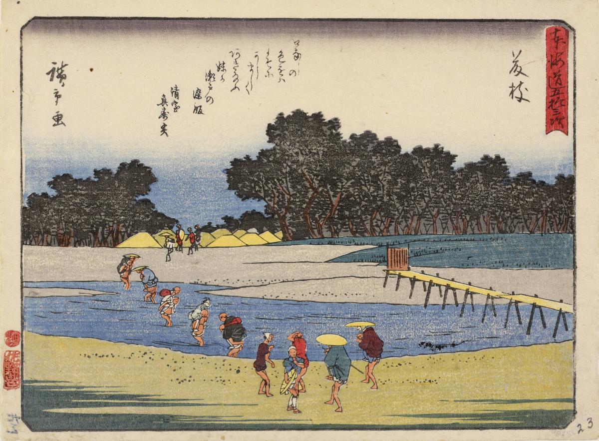 Fording the Seto River at Fujieda, with a Poem by Seishitsu Masumi, no. 23 from the series The Fifty-three Stations of the Tōkaidō
