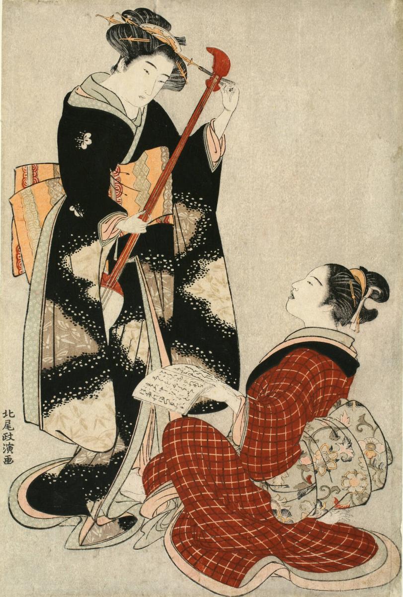 Two Geisha with Libretto and Samisen