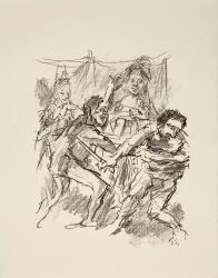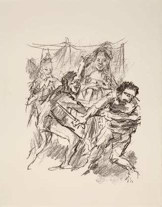 Not on viewIn 1963, Austrian painter Oskar Kokoschka created a series of 16 lithographs to illustrate William Shakespeare’s King Lear. One of the Bard’s most highly-regarded tragedies, the play follows the elderly King Lear’s descent into madness after foolishly dividing his estate among two of his three daughters based on their false flattery, resulting in a tragic outcome for all. Kokoschka’s series depicts critical points in the narrative which often correspond to dialogue by Lear and his daughters Goneril, Regan, and Cordelia, in addition to that of the other characters vying for the throne. Providing minimal information about the setting of each scene, Kokoschka’s sketchy compositions instead focus on the characters, each depicted with the artist’s characteristic energetic expressionism.