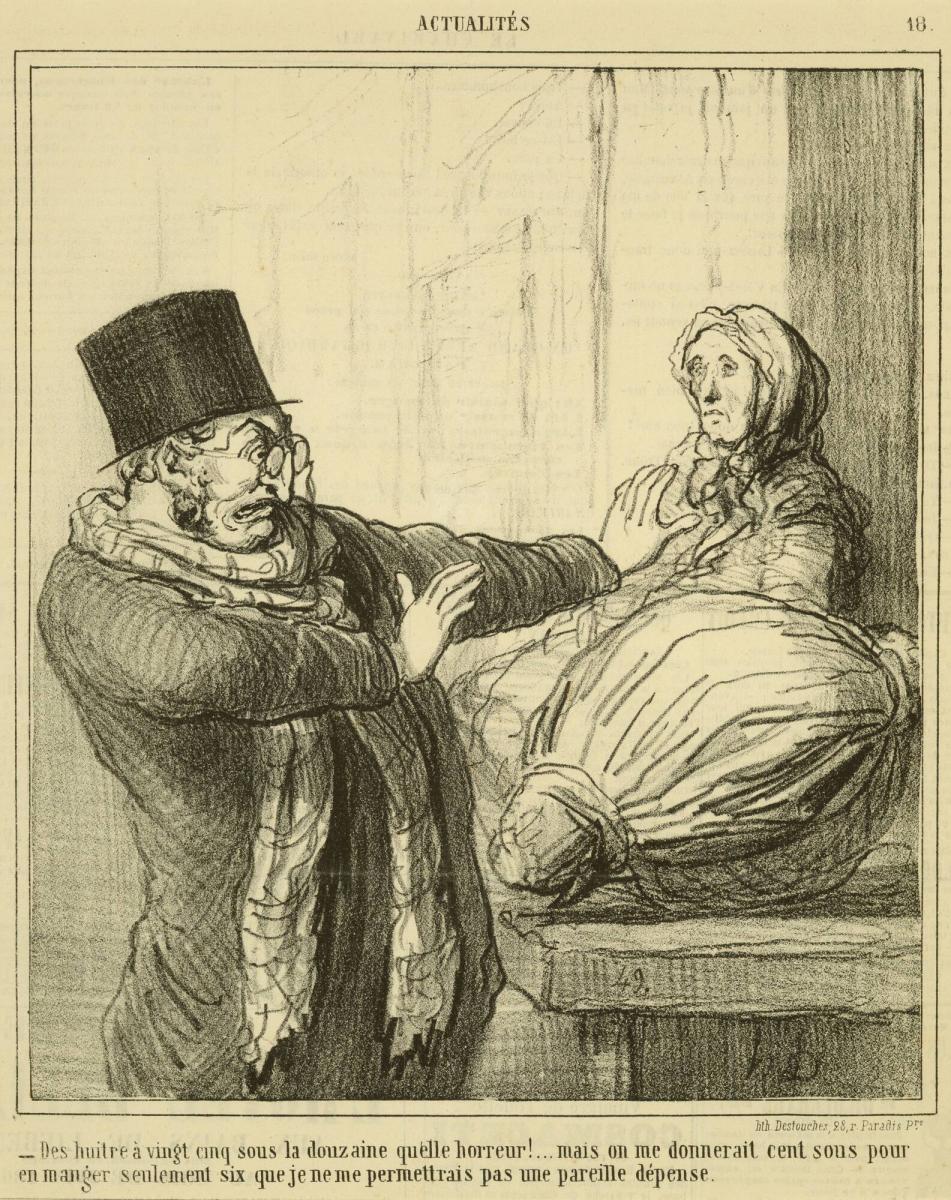 Des huîtres à vingt-cinq sous la douzaine quelle horreur !... (Twenty-five cents for a dozen oysters? That's outrageous!...), from the series Les Actualités