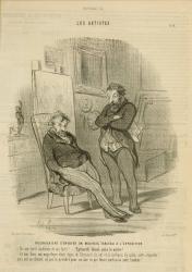 Not on viewDaumier frequently depicted with good-humored irony the trials and tribulations of the artist struggling for recognition. New talent was often frustrated by the old-fashioned and stifling aes-thetic values of the Royal Academy of Painting and Sculpture, whose annual exhibition or salon was an artist’s primary means of being discovered. Even if a work passed muster with the sa-lon’s jury, it could still face the tactless incomprehension of a bourgeois viewing public. Here an artist complains that his landscape painting—a genre considered inferior by the Royal Acade-my—has received a poor reception.
