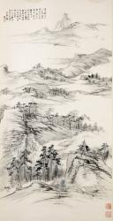 Chang held his first one-person exhibition in Shanghai in 1925. All his paintings exhibited were sold out within several days. In the same year, he and his brother, Zhāng Shànzǐ, opened their atelier, Dà Fēng Táng 大風堂, and taught over one hundred students through 1980s. Chang went on his first trip to Huangshan 黄山 (“Yellow Mountain”) in 1927, after which the mountainous region became a lifelong inspiration for his paintings and poems. In 1931, he made his second visit to Huangshan, during which he and Shànzǐ took over three hundred photographs. Later they published their first album including twelve of these photographs, and Chang went on to win the gold prize a photograph he submitted to the World Expo in Belgium. He moved to a studio in Wangshi Yuan 网师园 (“The Master of Nets Garden”) in Suzhou with Shànzǐ in 1932. In 1935, Chang was invited by the prominent painter Xǘ Bēihóng 徐悲鴻 (1895–1953) to teach at the National Central University in Nanjing for one year. Having been fascinated by Buddhist art for a long time, he left for the isolated desert oasis of Dunhuang in 1941 to see the famous Buddhist murals in the Mogao Caves and spent two and a half years there copying as well as numbering the murals with assistance of Tibetan monk-painters. Chang’s copies of these murals were exhibited and published in the following years, successfully reviving the state’s interest in studying and preserving the art of Dunhuang. During his visit to India in 1950, he also studied and copied murals in Ajanta and Darjeeling. Chang moved to Godoy Cruz, Argentina in 1952 and to Brazil subsequently in 1954. After living in California from 1968 to 1976, he settled down in Taipei, Taiwan, where he built a residence called Moye Jingshe 摩耶精舍 (“The Abode of Maya”). Chang died in Taipei in 1983.