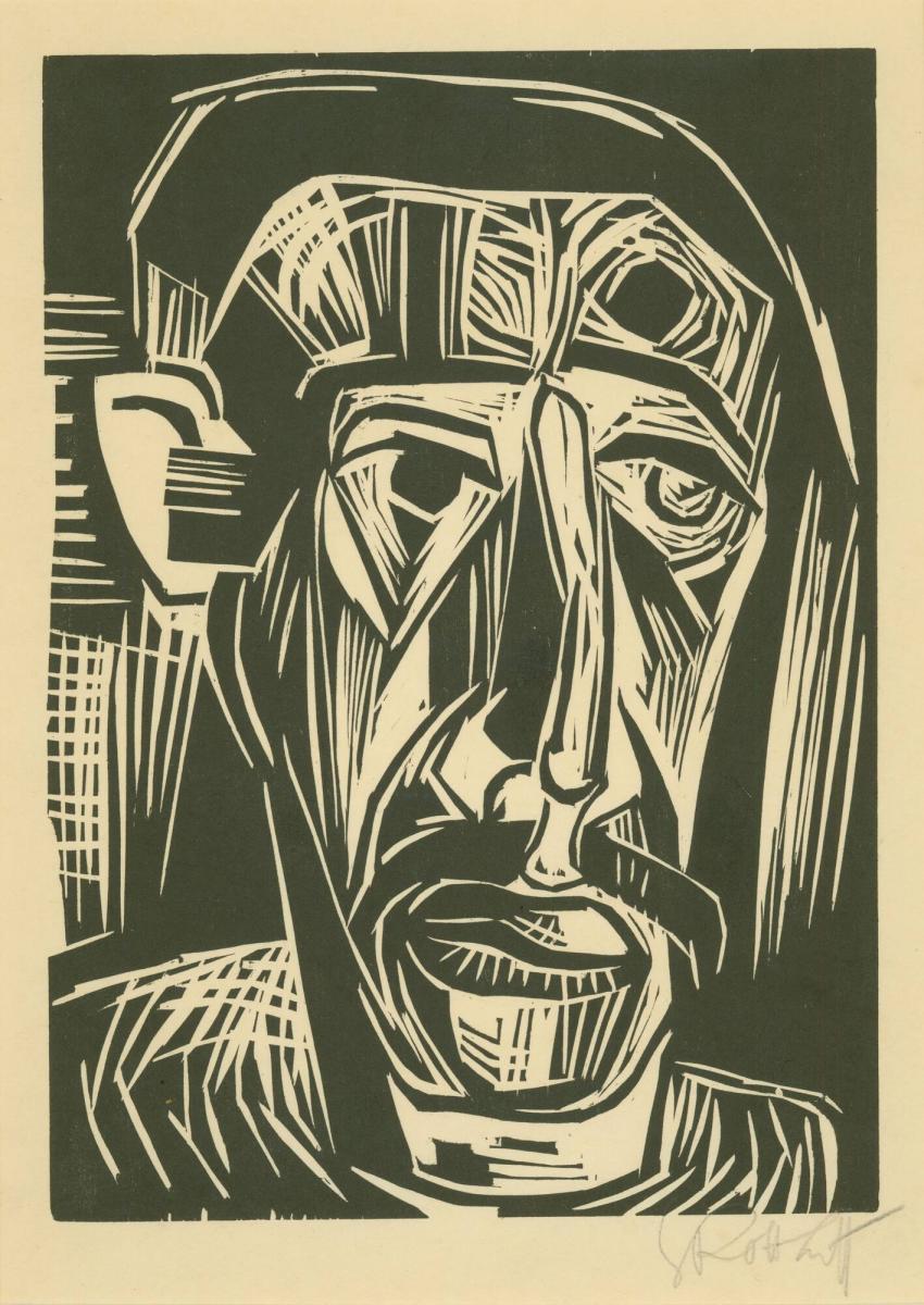 In 1920 Wilhelm R. Valentiner published the first monograph on Schmidt-Rottluff; the two men remained lifelong friends. The art historian Rosa Schapiro (1874-1954) was another important supporter: when she emigrated from Hamburg to London in 1939, she took with her a collection of works by Schmidt-Rottluff. During the purge of "degenerate art" in 1937-38, 608 of his works were confiscated from public collections in Germany, and he was forbidden to paint. During World War II, Schmidt-Rottluff served in the office of a command post on the Russian front and created wooden sculptures and religious woodcuts. His Berlin apartment was destroyed by a bomb in 1943, and he moved back to Rottluff near Chemnitz. In1947, he was awarded a professorship at the Berlin Hochschule für Bildende Künste (Academy for Visual Art), where he taught until 1954. The artist remained productive until his death in 1976.