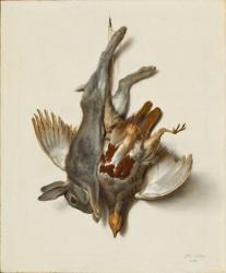 BiographyJean-Baptiste Oudry was born in Paris on 17 March 1686. He studied with the painter Michel Serre in 1704, then beginning in about 1705/7 served a five-year apprenticeship with the portraitist Nicolas de Largillierre (1656-1746). Oudry was accepted into the Académie de Saint-Luc in 1708 and elected a professor there in 1717. In the same year (1717) he was accepted into the Académie Royale, where he qualified as a full member in 1719, was made adjunct professor in 1739, and full professor in 1743. Oudry served as head of the tapestry manufacture at Beauvais from 1734, and at Gobelins from 1748. He received many prestigious commissions for both easel paintings and decorative pieces from (among others) the King of Denmark, the Duke of Mecklenberg at Schwerin, and Louis XV of France. Oudry was an extraordinarily prolific painter, tapestry designer, and illustrator, and exhibited regularly at the Paris Salon between 1725 and 1753. With François Desportes (1661-1743), he was probably the foremost painter of hunting scenes and still lifes of dead game in France during the eighteenth century, but also painted portraits, pure landscapes, and genre and history paintings. Oudry painted little after suffering a stroke in 1754, and died at Beauvais in 1755. His son Jacques-Charles (1722/23-1778) was also a painter of hunting scenes and still lifes.