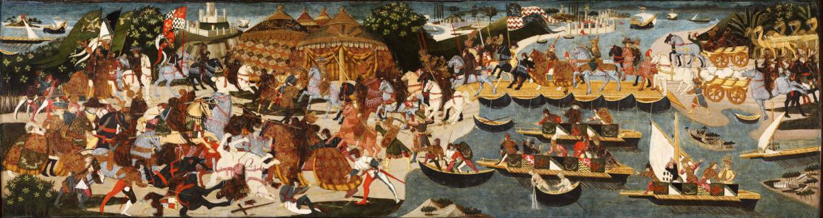 BiographyApollonio di Giovanni di Tommaso was born in Florence, sometime between 1415 and 1417. In 1442, he joined the doctors and apothecaries' guild (to which many artists also belonged), and in 1443 became a member of the painters' professional association, the Compania di San Luca. He and Marco Del Buono [Giamberti] (1402- 1489) formed a partnership by 1446, and together they ran the most successful shop for cassone painting in fifteenth century Florence. Appollonio was also active as a manuscript illuminator and fresco painter. He died in Florence in September 1465.