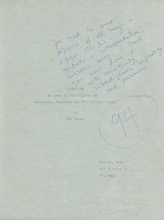 Her first sculptures date from 1964, during an eighteen-month stay in Germany with her husband, the sculptor Tom Doyle. Her first solo show of three-dimensional work, held at the Kunstverein für die Rheinlande und Westfalen, Düsseldorf, in 1964, consisted of thirty-six drawings and fourteen reliefs made of plaster and cord, either tightly bound or loosely hanging. On her return to New York in 1965, she began to focus and clarify her forms and to work on a large scale. That year was her first period of great productivity and achievement; her earliest significant sculptures--Laocoon, Metronomic Irregularity, Ennead, and Hang-Up--were completed during 1965-66, and her work appeared in the important group exhibitions, Abstract Inflationism and Stuffed Expressionism(Graham Gallery, New York, May 1966), and Eccentric Abstraction (Fischbach Gallery, New York, October 1966). Both exhibitions were organized by Lucy Lippard, Hesse's early supporter and most astute critic.